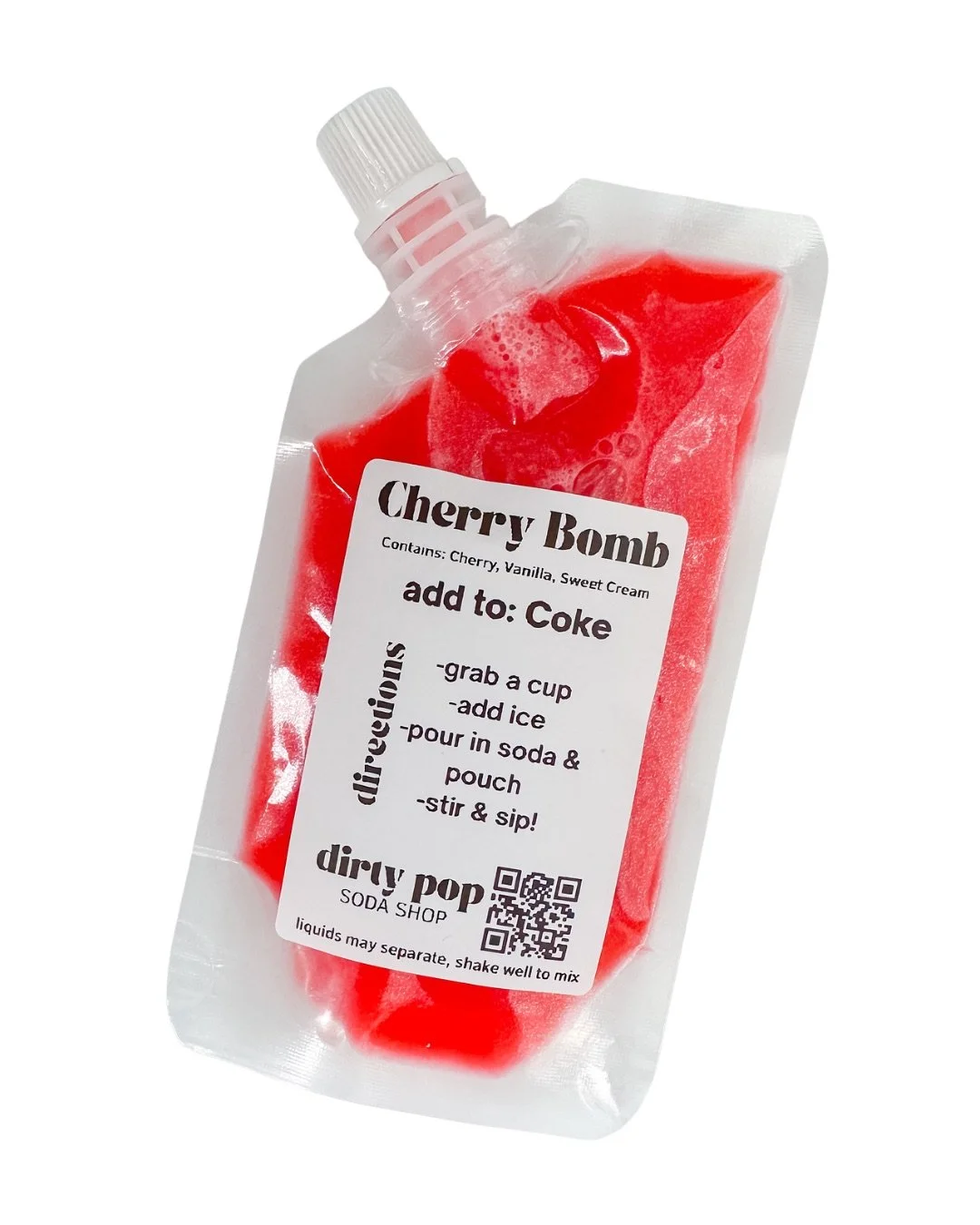 On The Go! › Cherry Bomb pouch Image 1 of 1 Cherry Bomb pouch from $3.00 Cherry + Vanilla + Sweet CreamGrab a cup - add ice - pour in soda & pouch - stir & sip! QTY: Select QTY single 5 pack 10 pack Add To Cart Added! Cherry + Vanilla + Sweet CreamGrab a cup - add ice - pour in soda & pouch - stir & sip!